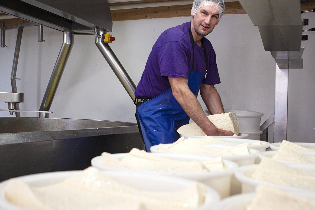 “nog voor zonsopgang melkt Boris zijn koeien. Enkele uren later wordt van deze verse melk al kaas gemaakt op de boerderij.”